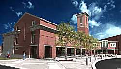 performance space and lecture hall. The building features commissioned art, large windows to admit natural light,